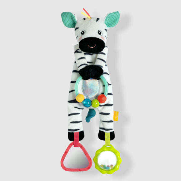 The DoBabyDoo Bean Bag Zebra is an engaging motor activity toy for babies aged 0+ months, designed to promote sensory development and motor skills. With a bead ring, ball rattle, squeak, crinkly paper, and granulate filling, it encourages grasping, feeling, and exploration. Featuring bright colours, soft materials, and a mirror to support self-awareness, it’s perfect for playtime at home or on the go. Lightweight and easy to hang over a pram, capsule, or play gym, it’s an ideal gift for little ones.