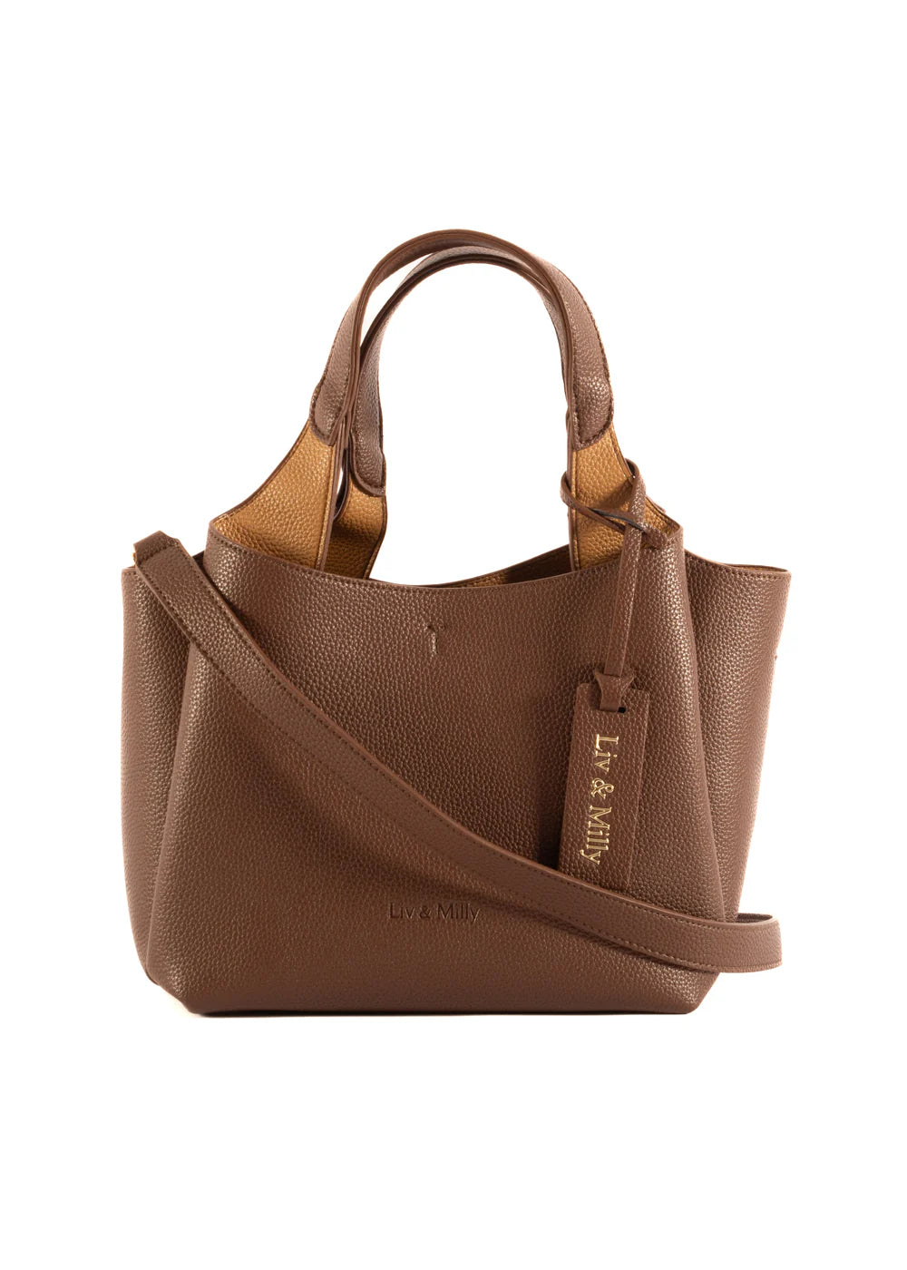 Make a statement with this sophisticated two-toned top-handle bag, designed to adapt to your day. Inside, two removable zipped pouches keep your essentials organised and easy to access. Carry it by the structured handle for a polished look, or switch to the removable, adjustable crossbody strap for effortless hands-free style. Smart, stylish, and built for modern life.